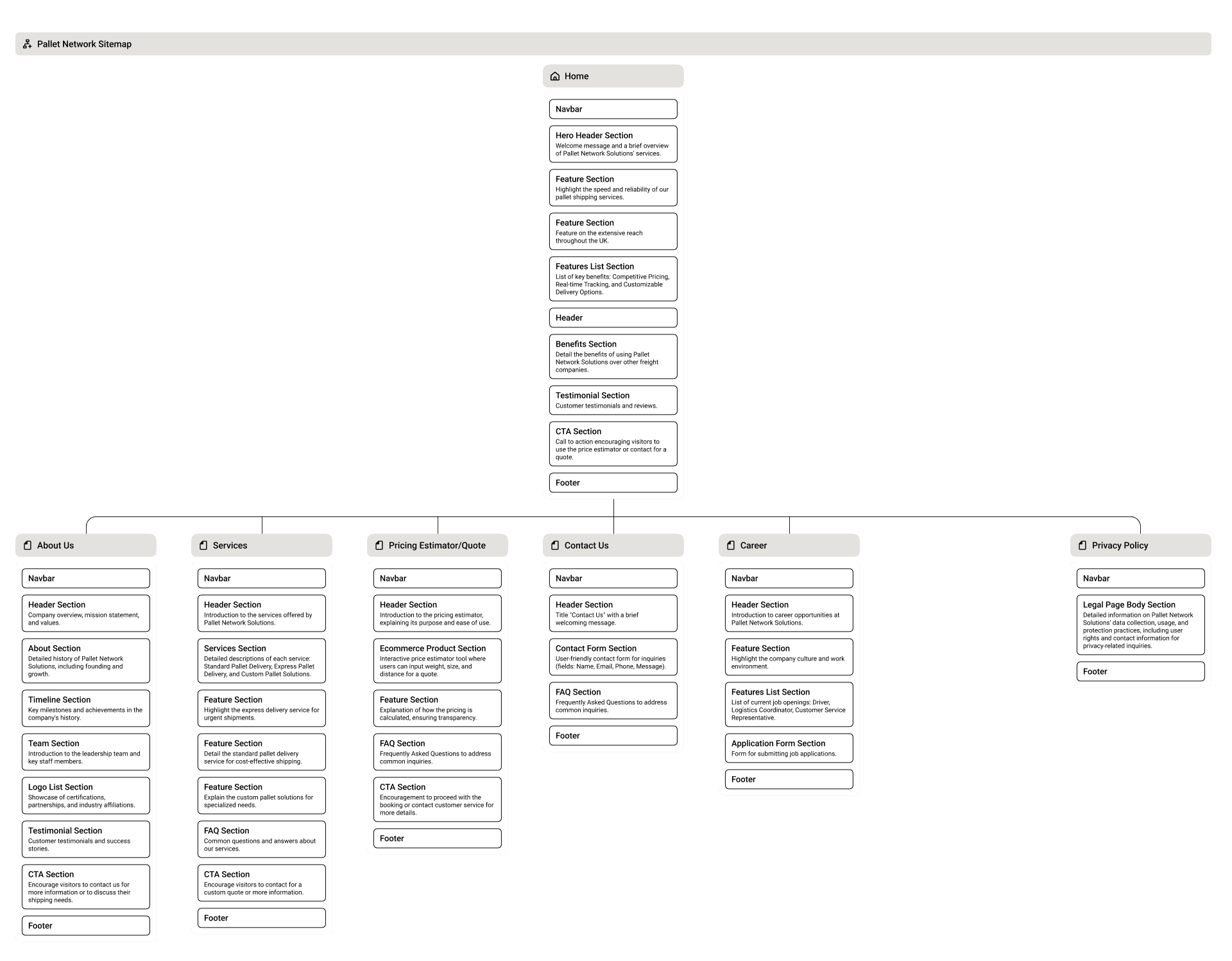 Sitemap: Defined the flow from homepage → quote form → results → payment option.